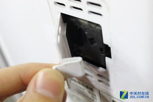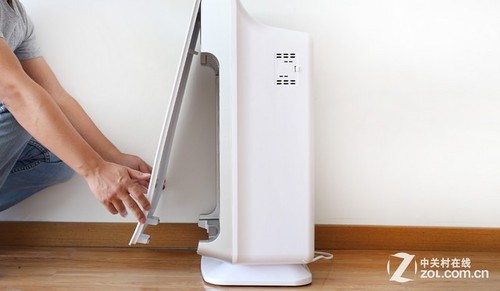 和其它產品略顯不同的是,這款凈化器的前面板閉合方式采用磁鐵吸附式,開啟方便,操作也比較方便,杜先生在使用中發現,當門板開啟時凈化器即停止運行。在門板吸附處設有觸發式開關,打開門板即相當于關閉開關,凈化器就會自動停止運行,防止家中兒童受傷。