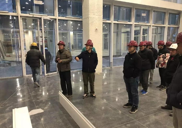 通過督導組與項目部的共同努力,在不到一個月的時間內,順利完成水磨石地面、墻面艾特板安裝、吊頂、幕墻封圍等作業。